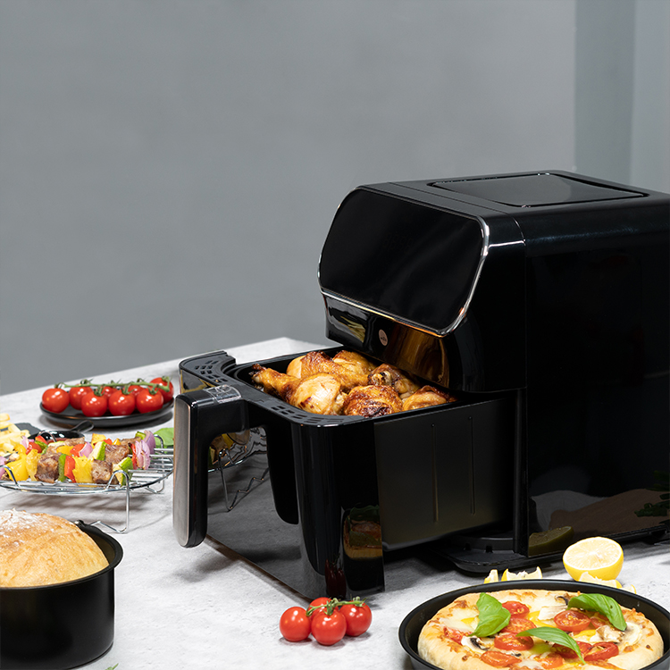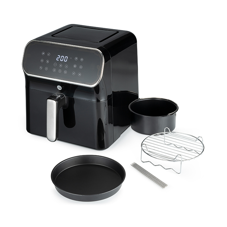 Airfryer leveres med 3 forskjellige tilbehør, en pizzapanne, et stekebrett og en stekeplate. Ved å bruke det forskjellige tilbehøret er mulighetene for alt du kan tilberede i airfryeren uendelige.