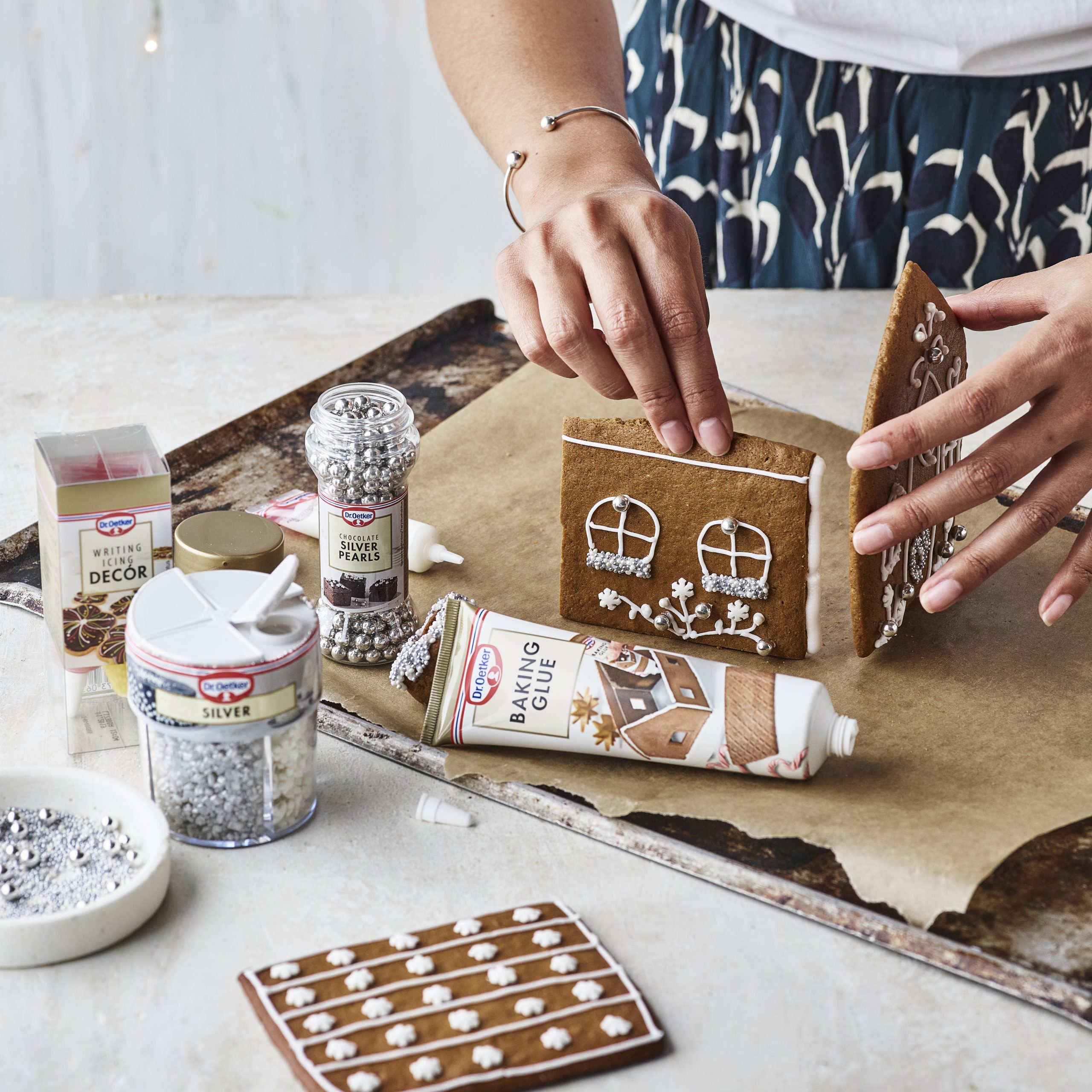 Spiselig bakelim fra Dr. Oetker, uunnværlig til pepperkakehus eller til liming av fondant og marsipan på kaker.