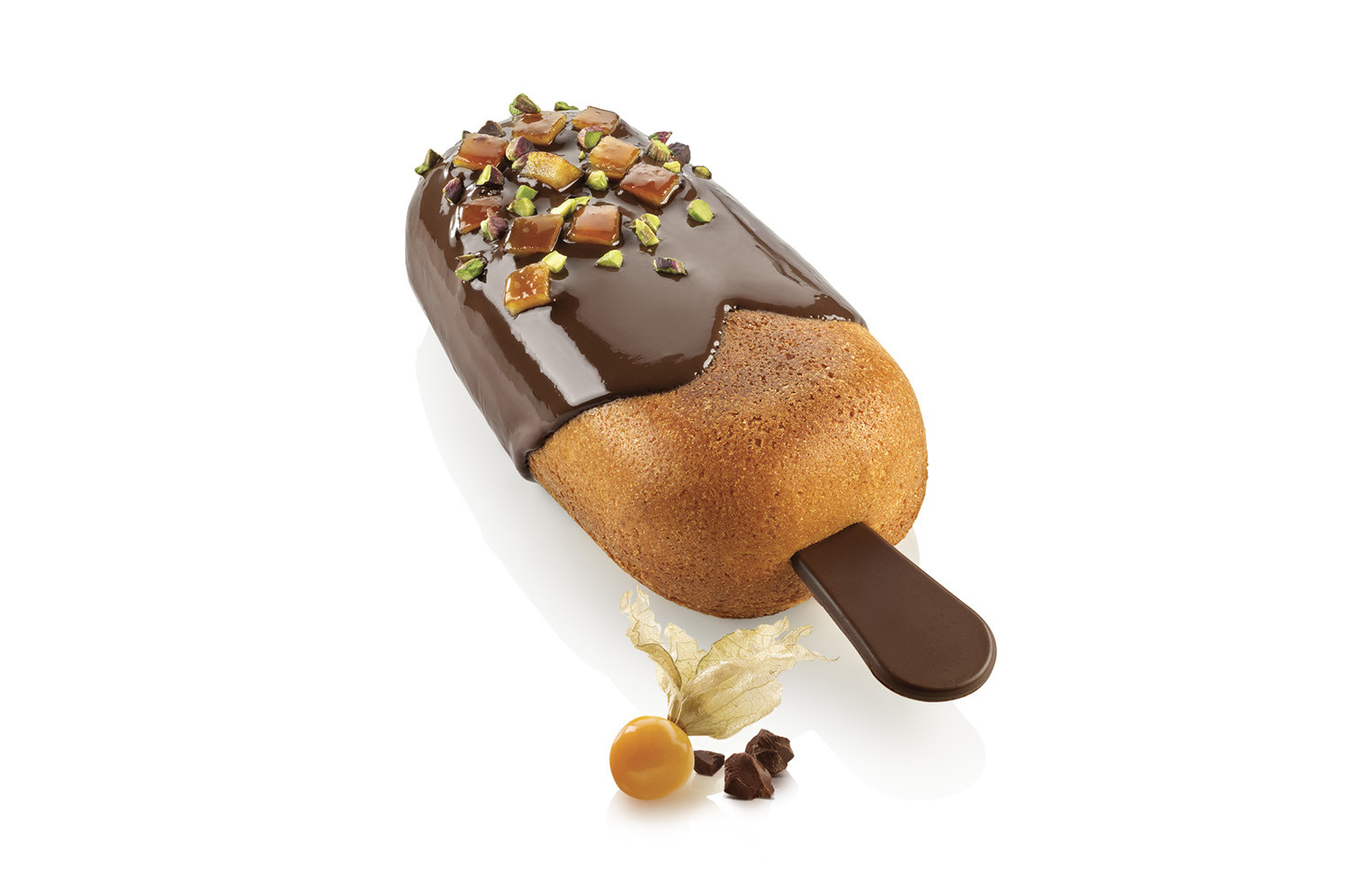 En sjokoladeform følger med, slik at du kan lage kjempestore sjokoladepinner som du kan stikke inn i isen/kaken/moussen for å få den til å se ut som en ekte ispinne.