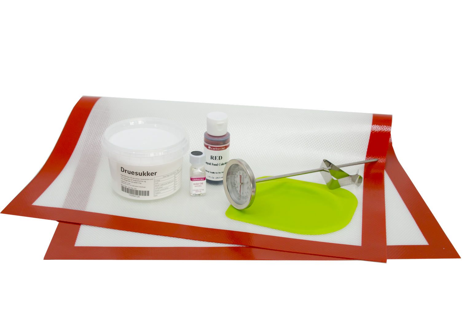 Med dette godteristartsettet får du utstyret du trenger for å komme i gang, i tillegg til smaker og farger som gir hjemmelagde godterier et profesjonelt preg.