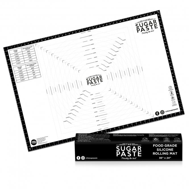 Ved hjelp av rutenettet på matten kan du enkelt rulle ut sukkerpastaen, fondanten eller deigen til riktig størrelse.