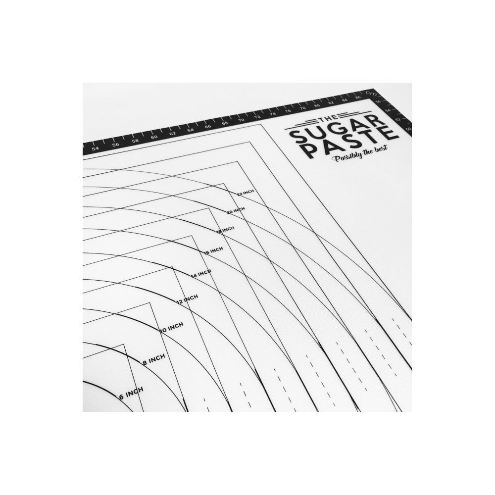 Denne matvaregodkjente kjevlematten er en praktisk non-stick arbeidsmatte til oppmåling, kjevling og elting av sukkerpasta, fondant eller deig.
