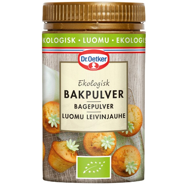 Dr. Oetker Økologisk hevemiddel for bakevarer. Tilfører luft og volum til deigen. Brukes på samme måte som Dr. Oetker original bakepulver.