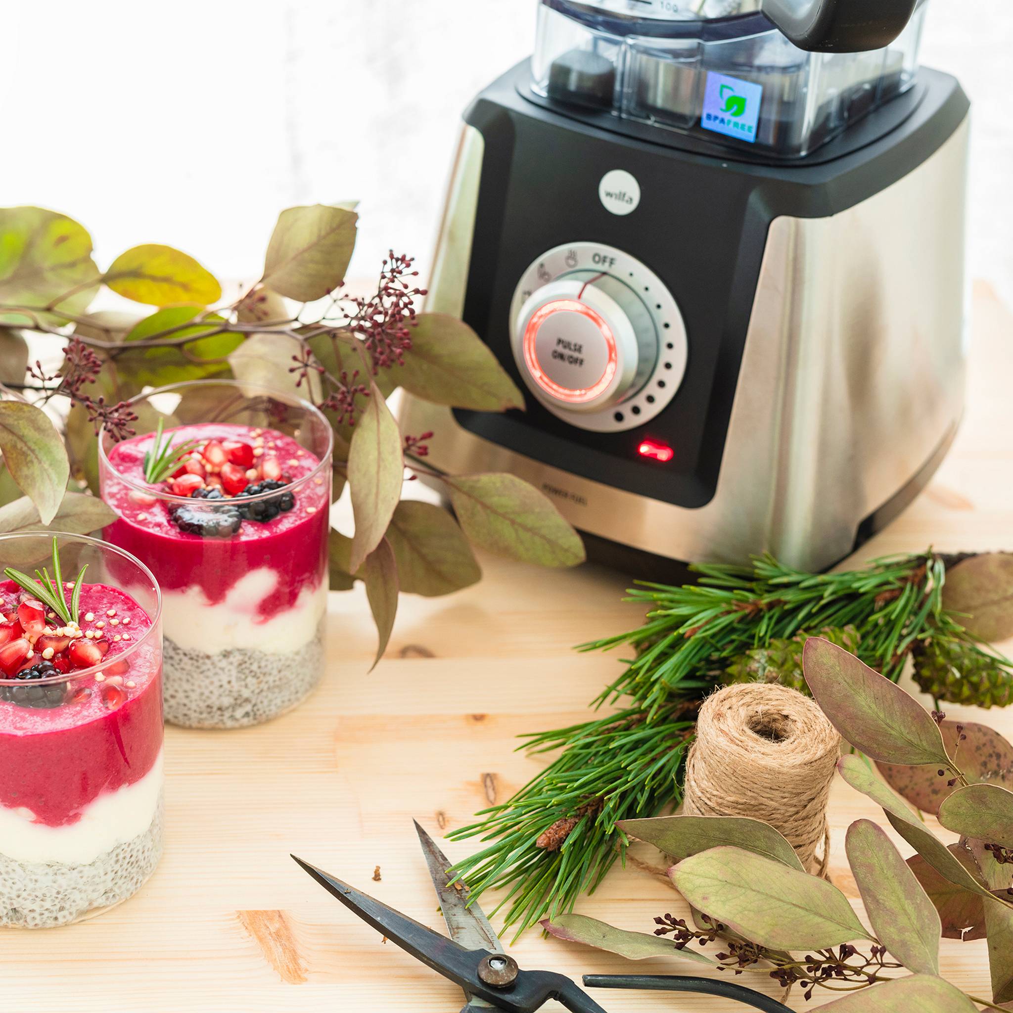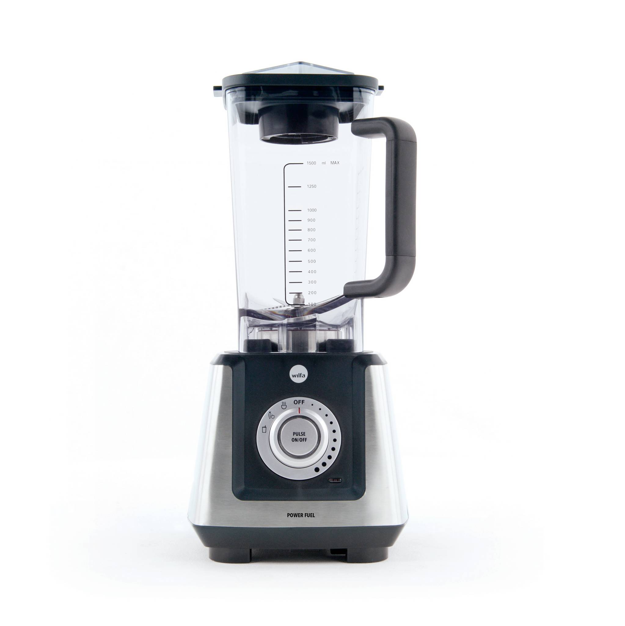 Wilfa Powerfuel Steel BPF-1200S er en kraftig blender på 1200 W med et høyt turtall på 22000 o/min og en kanne i titanplast som tåler temperaturer opp til 100 °C.