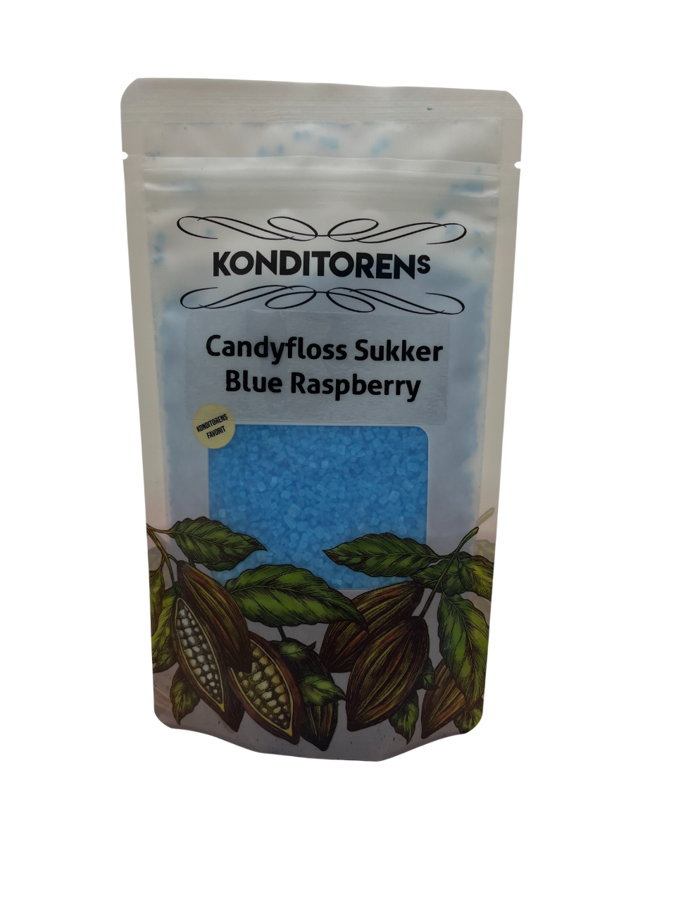 Blått sukkersukker av riktig kvalitet – for stor, luftig og velsmakende sukkerspinn som sitter godt fast på pinnen. Den blå varianten har en klassisk amerikansk smak av blå bringebær.