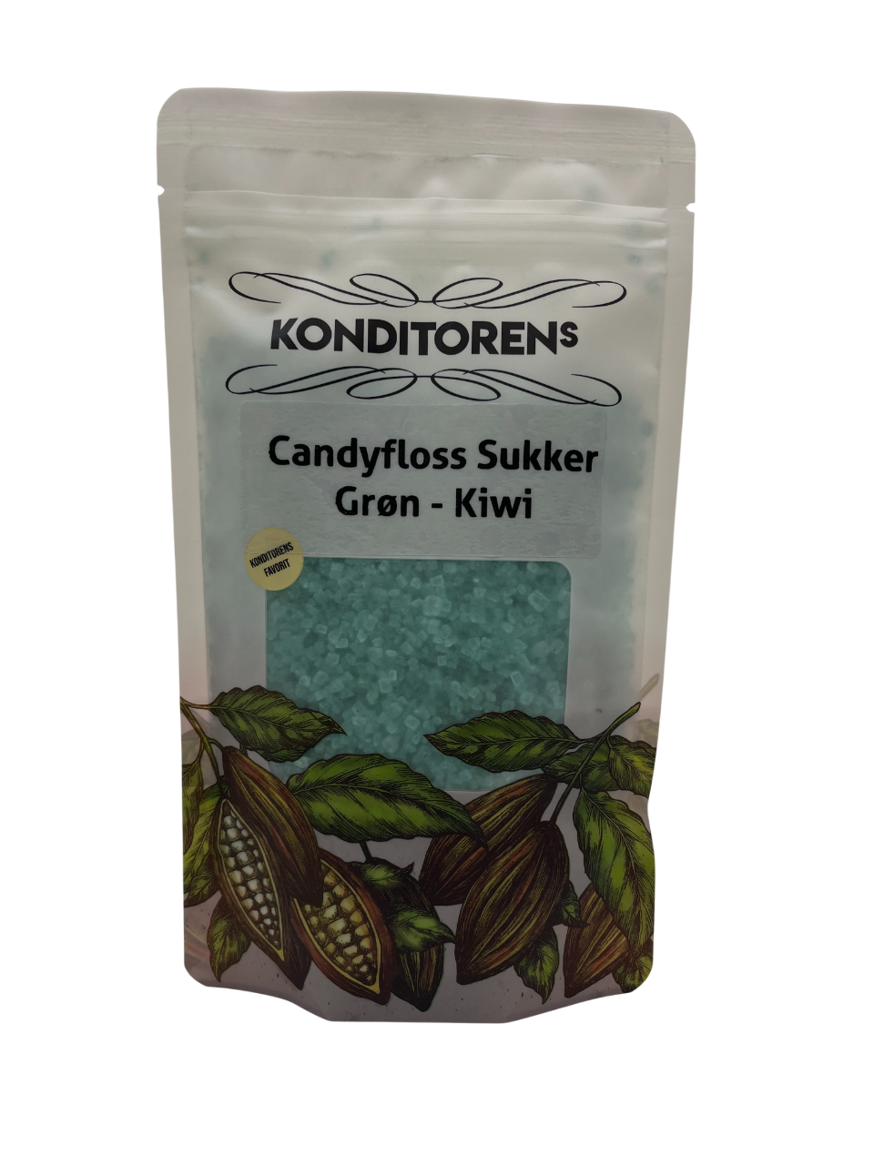 Grønt melis av riktig kvalitet – for stor, luftig og velsmakende sukkertråd som sitter godt fast på pinnen. Den grønne varianten har en frisk smak av kiwi.