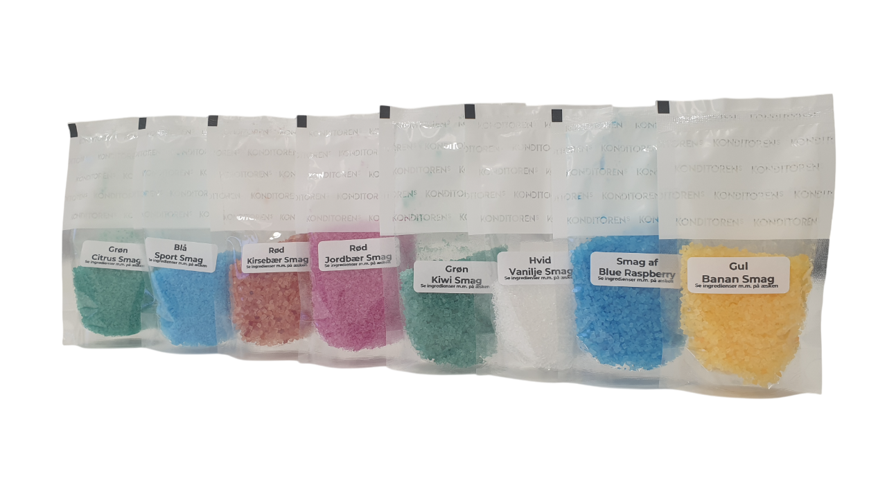 I denne startpakken får du en sukkerspinnmaskin og 8 ulike smaker av sukkerspinn.
