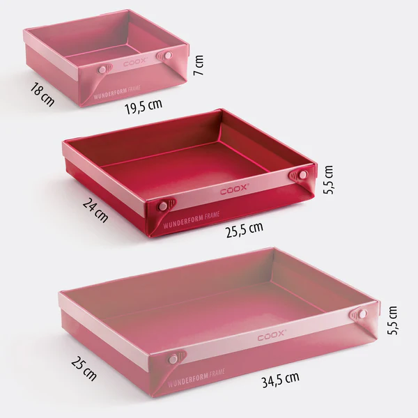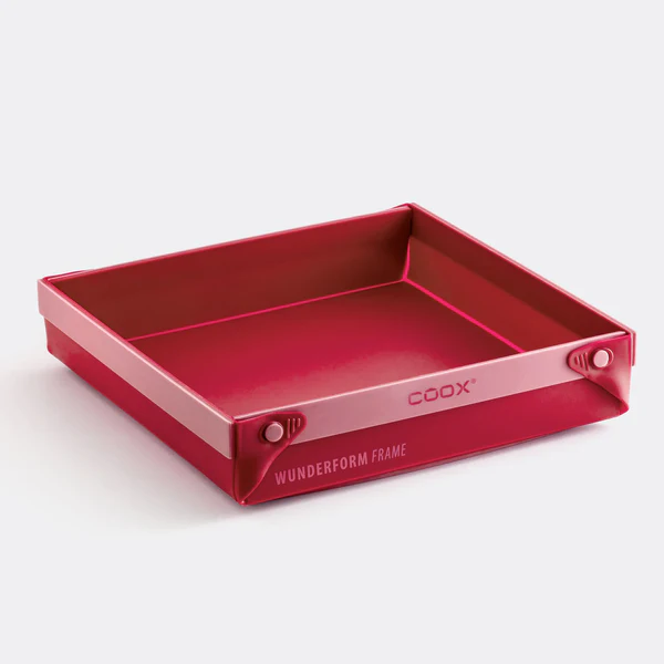 WUNDERFORM Frame MQ fra coox er en stor, firkantet og patentert bakeform som forandrer måten du baker og lager mat på. Med de smarte hjørneåpningene kan du brette formen ut og servere direkte – uten å måtte snu eller løfte tunge ovnsfat.
