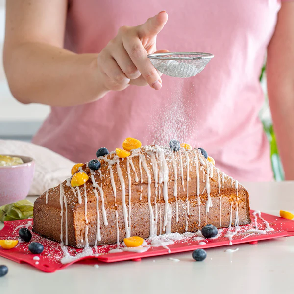 Formen har innebygde metallforsterkninger både i bunnen og på sidene, slik at den står støtt under stekingen uten å vingle. Silikonoverflaten gjør at ingenting fester seg – og du trenger verken bakepapir eller fett.